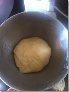 Now add the yeast solution and 1 cup of flour and mix it. Add 1/2 cup of flour at a time until it forms a soft, elastic and smooth dough. It should be non-sticky.
