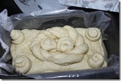To the other portion, split into 2 and make braids, roses or rope decorations and keep it on the loaf pan